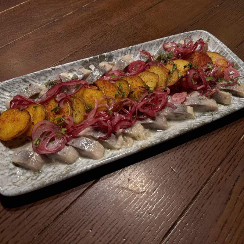 Закуска из сырой рубленной говядины, заправленной коньяком, желтком, луком, каперсами, солеными огурцами, горчицей и специями. На большой деревянной доске вам приносят все ингредиенты, которые, при желании, вы можете добавить сами, а можете попросить официанта. Подаем с хрустящими гренками из черного хлеба и зубчиком чеснока.